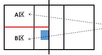 测试方法:考生站在A区、B区,分别接发球5个,共10个。由测试人员站在对方发球区发球,考生将球垫到前场区的规定区域内,每接起1个到位球,得1分,共10分。