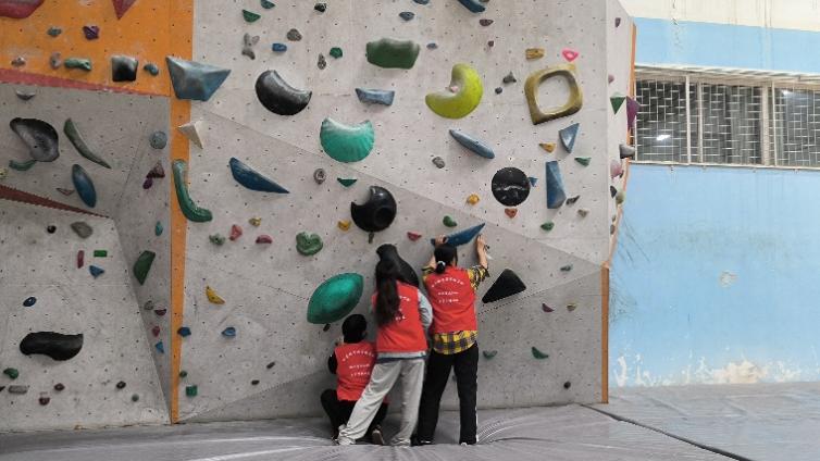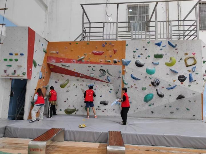 公司志愿者充分发挥休闲体育专业攀岩专项特长,最终顺利完成了中低处岩壁的清洁任务,同时对常用的岩点进行了检查,为使用者解决了安全隐患,降低了运动受伤的风险,同时也营造了良好的运动环境,有利于提高同学们对于攀岩的积极性,促使同学们攀岩训练效果的提升。