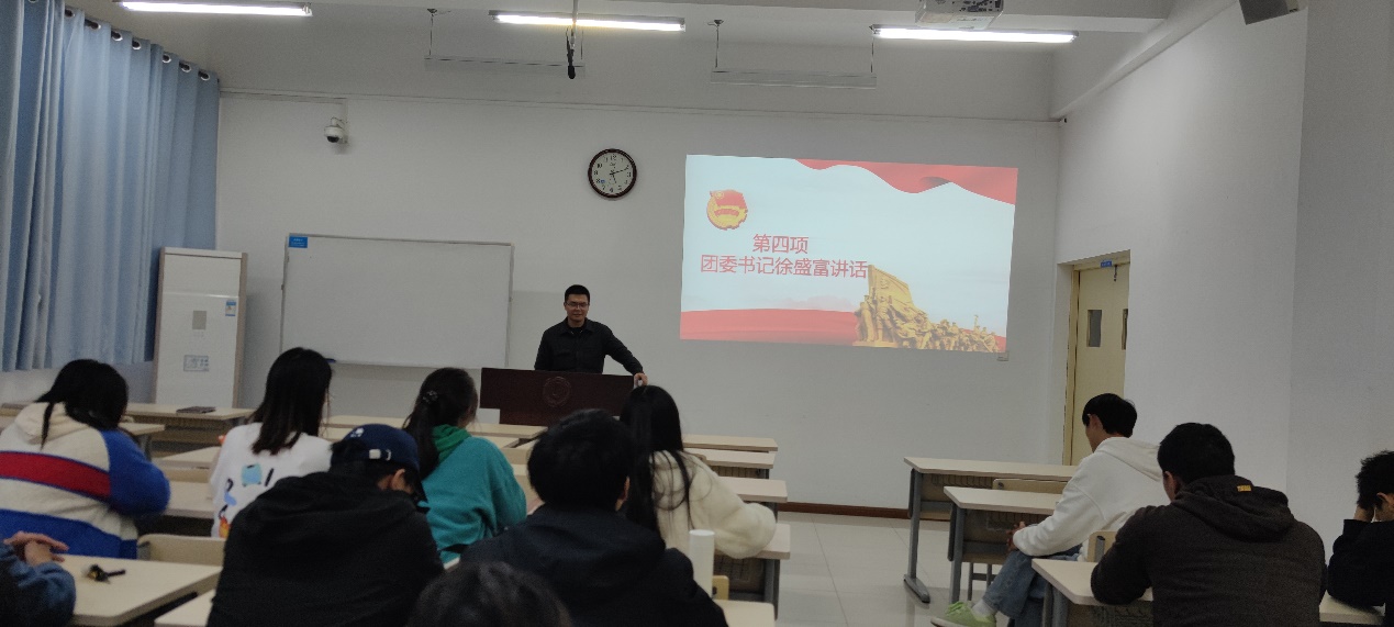 休闲体育2141团支部在洪亮的团歌声中拉开了团日活动的帷幕,公司团委书记徐盛富老师与全体团员共同学习了习近平总书记在全国“两会”期间的重要讲话精神,交流学习感想和心得。