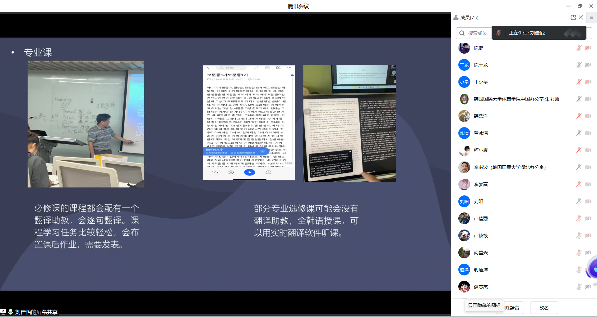 会上,刘佳怡分享了申请韩国国民大学的经验并从语言、生活、住宿、学习等方面向同学们介绍了基本情况。同时,她还分享了自己留学的感悟,勉励同学们勇敢“走出去”,在不同文化交流中拓展国际视野。