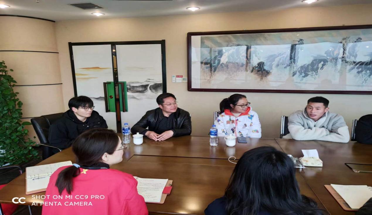 2024年3月4日上午9:30点,指导教师胡启良、孙立海前往互通全马实习单位了解员工实习情况。公司赛事主管陈方靖为同学们介绍公司事迹;公司人事行政饶君玲通过视频介绍以及现场讲解,为各位实习生们展示了互通国际集团互通全马体育的企业文化、发展历程、未来愿景以及各项规章制度;赛事活动部总监覃安鑫向实习生们介绍了此次实习培训目标,整体工作安排,马拉松赛事各版块工作内容,让他们对公司有了一个全方位的了解。