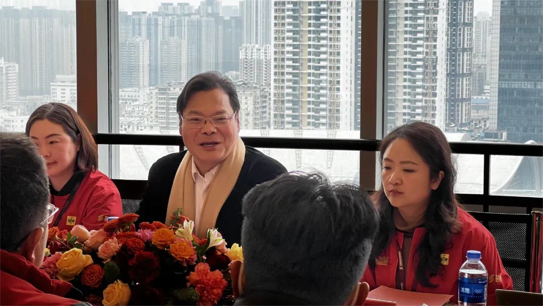 欢迎会上,互通国际集团董事长邓超明发表了热情洋溢的讲话,他说阳春三月,万物复苏,正是新力量汇聚的时刻,对来自公司充满朝气和活力的实习生们表示热烈的欢迎,并寄予了殷切的期望,期待着新鲜血液、独特视角和无限创意为公司注入新的活力。希望实习生们能够在互通国际集团互通全马体育这个平台上,充分发挥自己的才能和潜力,实现个人价值的同时,也为公司的发展贡献自己的力量。